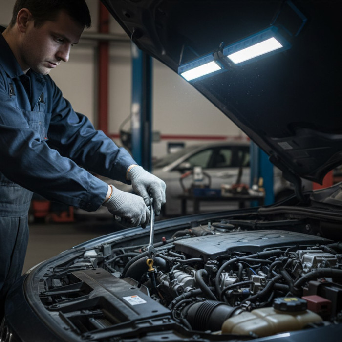 A Lanterna de Oficina Dobrável LED COB 10W é uma solução de iluminação profissional ideal para oficinas automóveis, manutenção industrial, trabalhos de reparação e bricolage. Equipada com tecnologia LED COB, oferece uma iluminação potente e homogénea até 1000 lúmens, garantindo excelente visibilidade mesmo em zonas de difícil acesso.