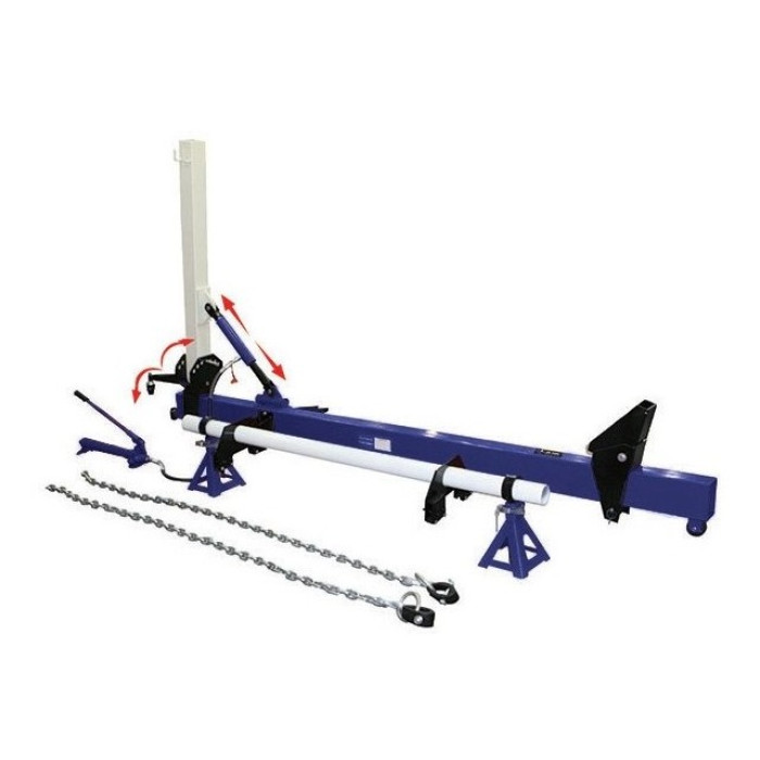 Equipado com um potente cilindro hidráulico com capacidade de 10 toneladas, este equipamento permite aplicar força controlada para reposicionar e alinhar componentes da carroçaria com elevada precisão. A estrutura robusta garante estabilidade durante as operações de redressamento, permitindo trabalhar com segurança em reparações exigentes.