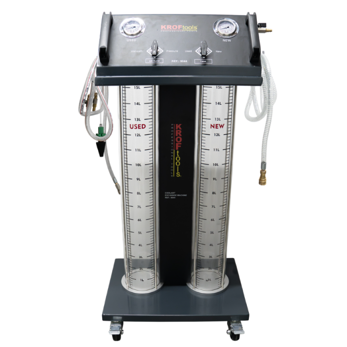 A Máquina de Troca de Líquido de Refrigeração 15 L Kroftools é uma solução prática e eficiente para a manutenção do sistema de arrefecimento de veículos automóveis e máquinas industriais. Concebida para facilitar a troca total ou parcial do líquido de refrigeração, esta unidade profissional assegura um serviço limpo, rápido e seguro.