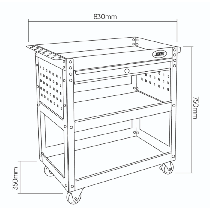 O Carrinho de Ferramentas (3 prateleiras + 1 gaveta) é um elemento essencial para organizar ferramentas e componentes em oficina.