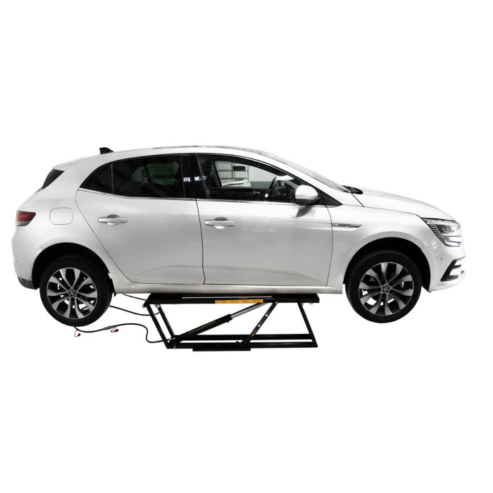 A altura mínima reduzida permite trabalhar com veículos mais baixos, enquanto o sistema hidráulico assegura uma elevação progressiva e controlada, aumentando a segurança durante a utilização.