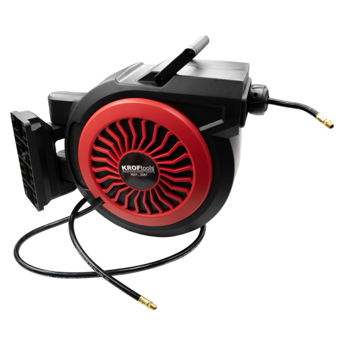 Este enrolador de ar Kroftools é uma solução eficiente para manter o teu espaço de trabalho organizado, seguro e pronto para qualquer intervenção que exija ar comprimido.